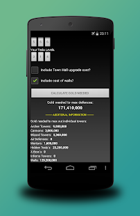 Aplikasi ini memiliki perhitungan yang tepat pada berapa banyak Gold yang dibutuhkan, serta biaya untuk setiap jenis individu pertahanan. Perhitungan Dinding juga didukung yang menunjukkan berapa banyak Gold yang dibutuhkan untuk meng-upgrade mereka sepenuhnya untuk Town Hall