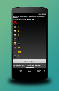 Aplikasi baru yang memungkinkan pemain Clash of Clans untuk menghitung jumlah Gold yang mereka butuhkan, untuk meng-upgrade semua pertahanan mereka serta dinding untuk Town Hall yang ditentukan antara tingkat 6 dan 10 (support).